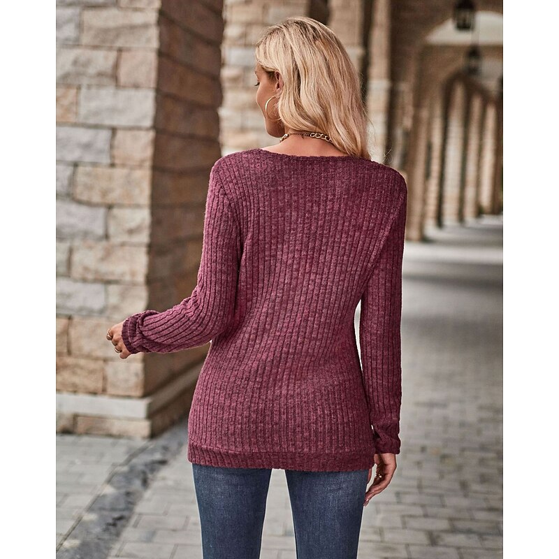 More information about Women's Tunic Daily Casual Long Sleeve Regular Tops V Neck Work Daily Red Blue Green Khaki Fall Winter