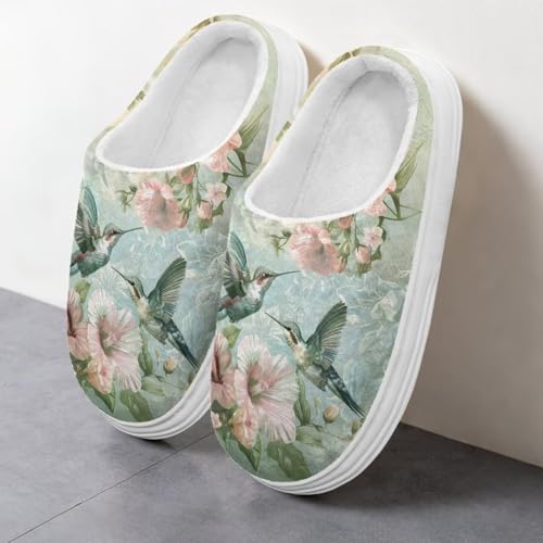 UNICEU Hummingbird Fuzzy Slippers for Women Lightweight Soft House Shoes Comfy Slip On Indoor Bedroom Slides 1
