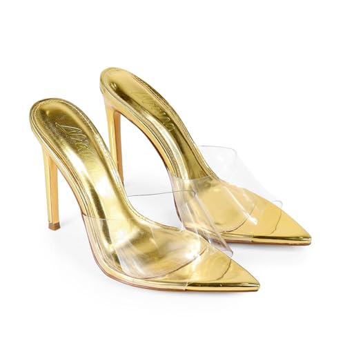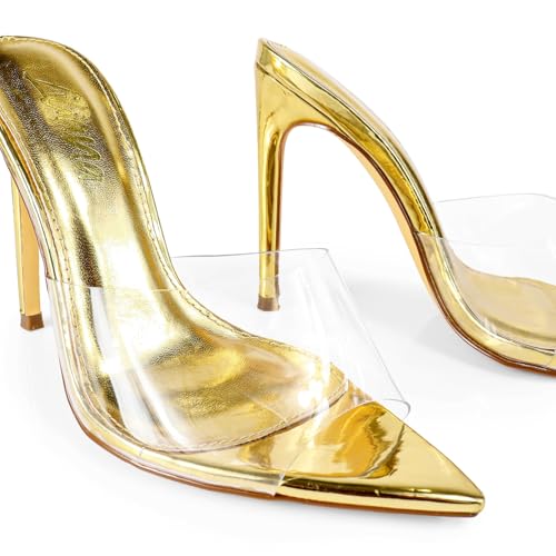 Liliana Women Clear Pointed Toe Sandals Stiletto Heels Slip on Mules Sandals 6