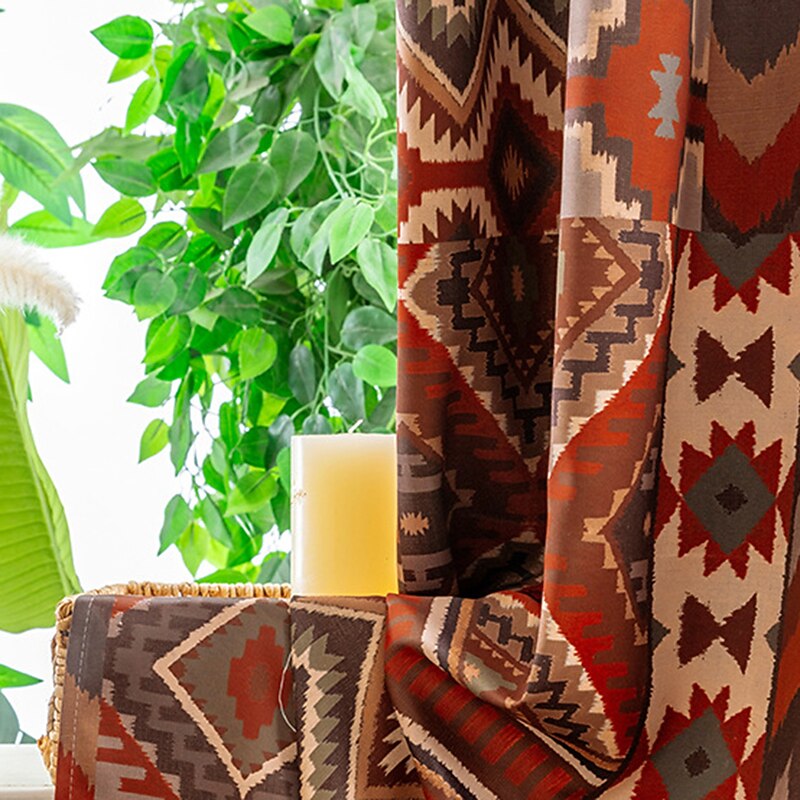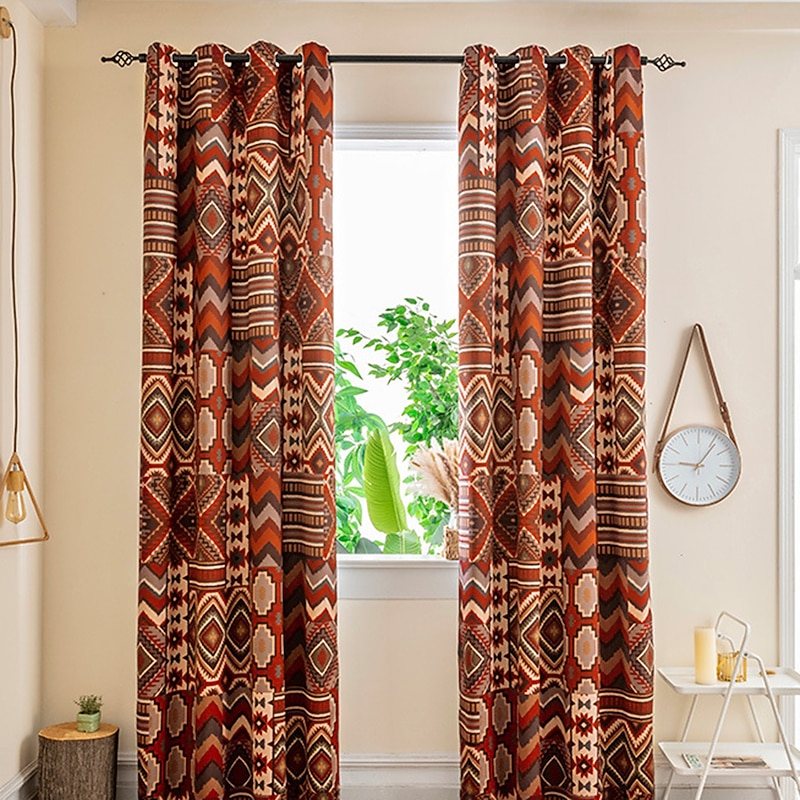 HOT ! 100% Blackout Curtain Drapes Boho Style ,1 Panel Grommet Thermal Insulated Room Darkening Curtains for Bedroom and Living Room
