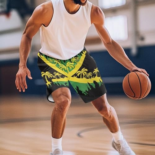 HOT ! Jamaican Flag Clothes,Jamaican Flag Shorts,Jamaican Clothes,Jamaica Beach Shorts,Swim Shorts Men,Jamaica Coconut Tree Print 3X-Large