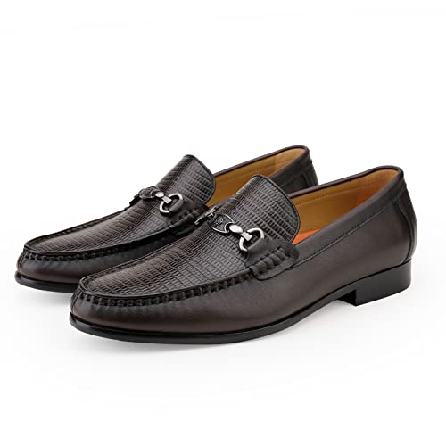 Mens Genuine Dress Shoes, Premium Crocodile Print Leather Slip-on Casual Shoes Penny Loafers for Mens, Black 7