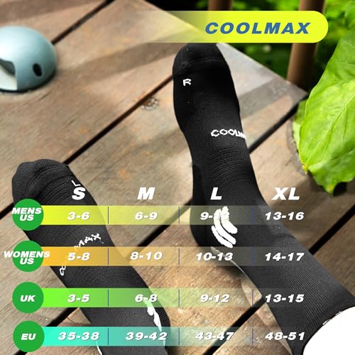 BRISIRA Coolmax Compression Running Socks Moisture Wicking Anti Blister Crew Mid Calf Athletic Hiking Tennis Sock 3 Pairs 6