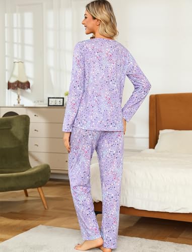 ENJOYNIGHT Womens Pajama Set Cotton Long Sleeve Pjs Two Piece Sleepwear with Pockets 2