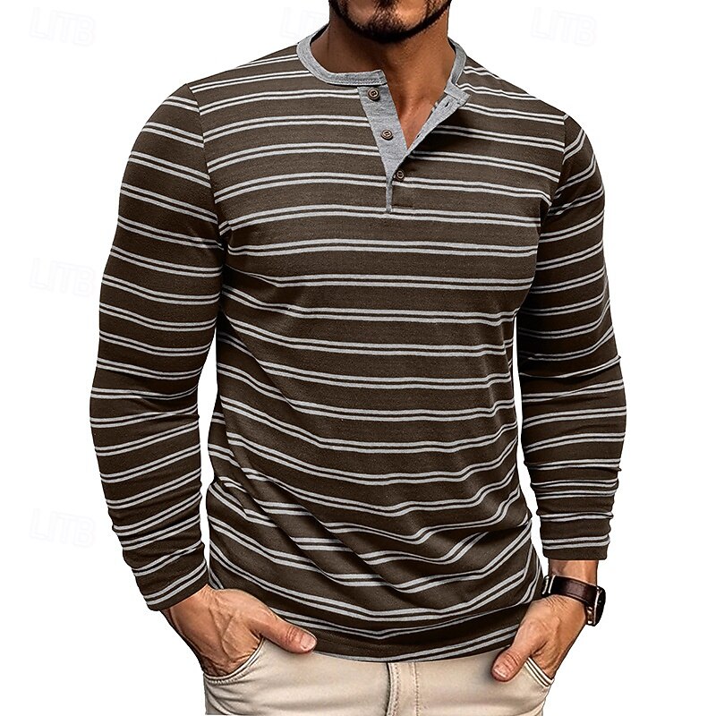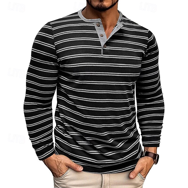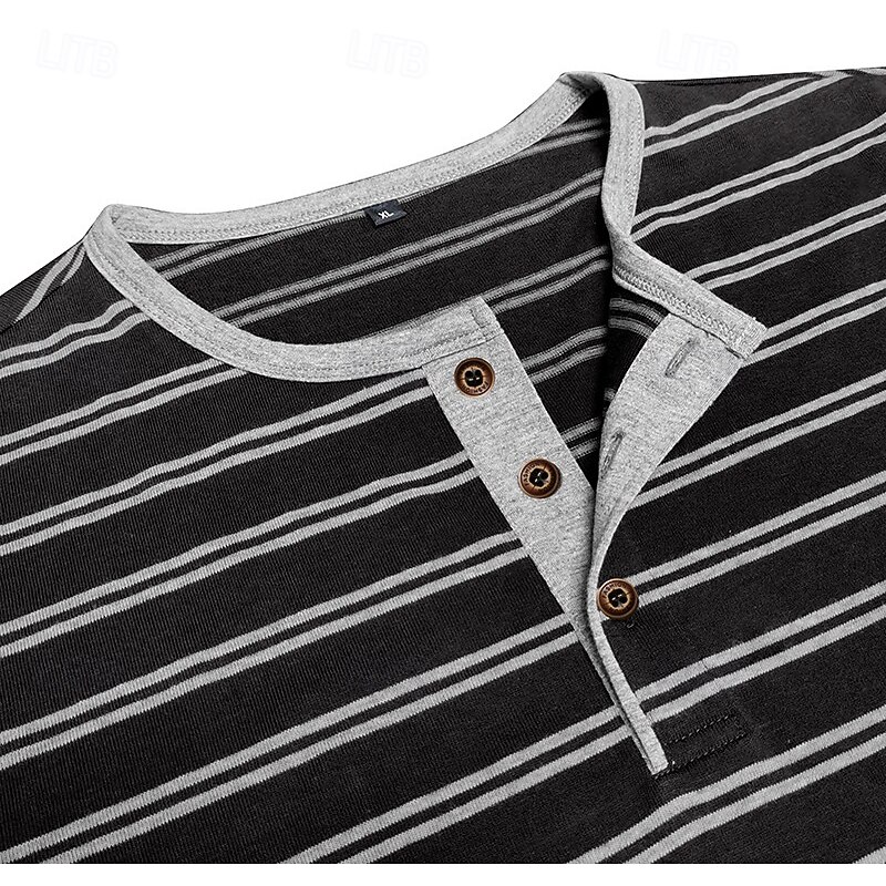 More information about Men's Button T Shirt T Shirt Henley Shirt Tee Long Sleeve Henley Spring & Fall Striped Fashion Designer Basic Buttons Vacation Street Going out Black White Khaki Top Tee for Men