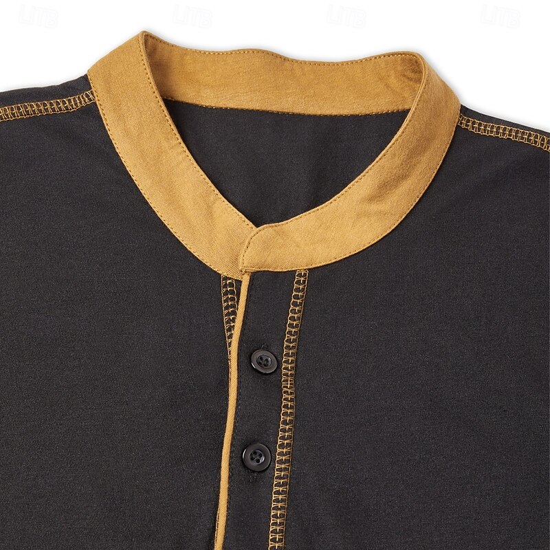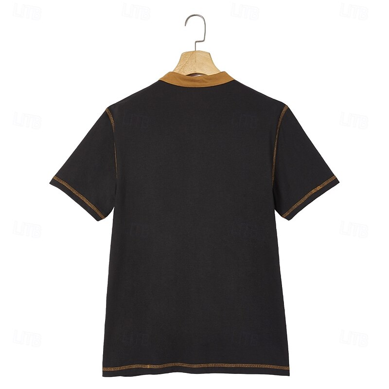 More information about Men's Henley Shirt Tee Top Short Sleeves Patchwork Fashion Designer Basic Double Twine Contrast Stitching Color Matching Decorative Lines Henley Vacation Street Casual Summer All Seasons Black Blue