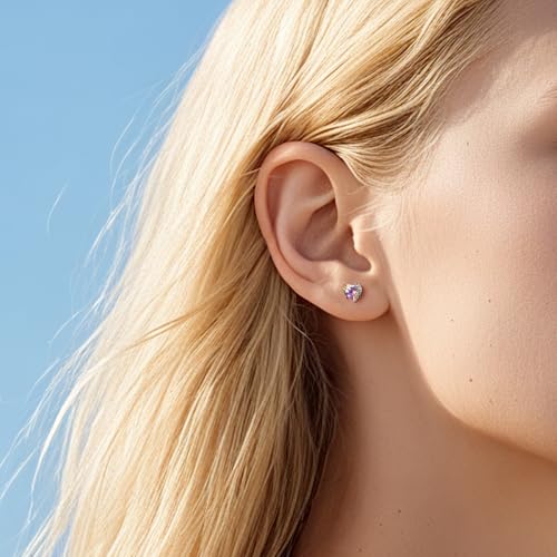 Limerencia Heart Birthstone Screw Backs Earrings G23 Implant Grade Titanium Stud Earrings 20G Hypoallergenic Cubic Zirconia Tragus Piercing Post for Sensitive Ears 4
