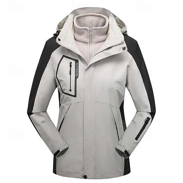 HOT ! Women's Hiking 3-in-1 Jackets Ski Jacket Hiking Fleece Jacket Winter Outdoor Thermal Warm Windproof Lightweight Wear Resistance Outerwear Winter Jacket Trench Coat Skiing Fishing Climbing Black Ivory