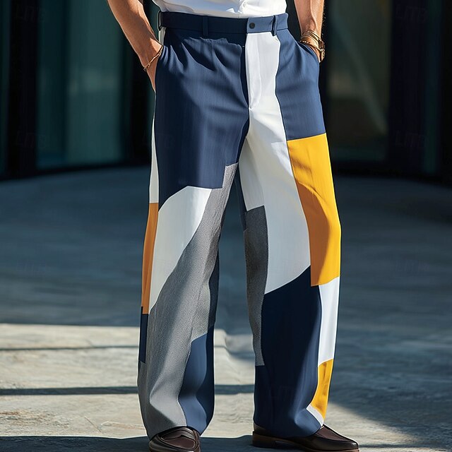 HOT ! Men's Geometric Color Block Trousers Dress Pants Suit Pants Mid Waist Business Casual Dailywear Holiday Streetwear Relaxed Fit Flat Front Dress Pants with Side Pockets Spring Fall 3D Print Blue Green