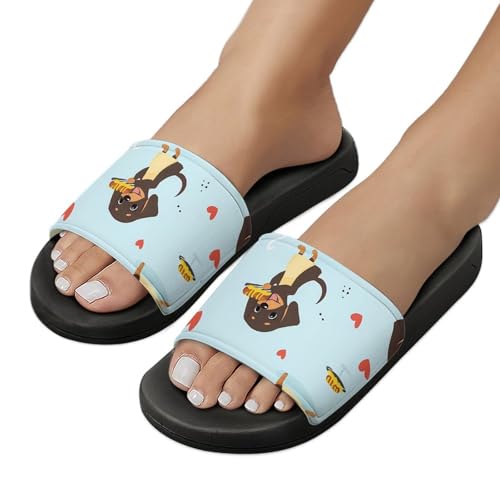 HOT ! Dachshund Dog BBQ Grilled Sausages Men's Bathroom Slippers Shower Indoor Home Beach Outdoor Shoes for Women