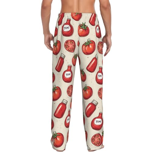 HOT ! Mens Pajama Pants - Tomato Ketchup Red Print Soft Sleep Lounge Pants For Men, Casual Pj Bottoms With Pockets