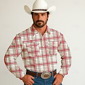 More information about Men's Geometric Grid / Plaid Patterns Western Shirt Button Up Shirt Cowboy Shirt Long Sleeve Western Vintage Retro Outdoor Casual Spring Fall Turndown Collared Shirts Front Two Pockets Red