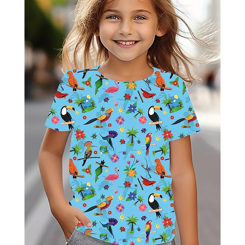 More information about Girls' 3D Graphic Animal Bird T shirt Tee Short Sleeve Summer Spring Fashion Basic Kids 4-12 Years Crew Neck Outdoor Casual Daily Regular Fit