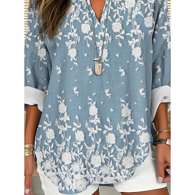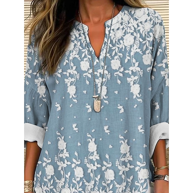 More information about Women's Blouse Tunic V Neck Long Sleeve Boho Casual Tops 3D Print Floral Graphic Vintage Tropical Regular Tops Daily Wear Print White Yellow Pink Blue Khaki