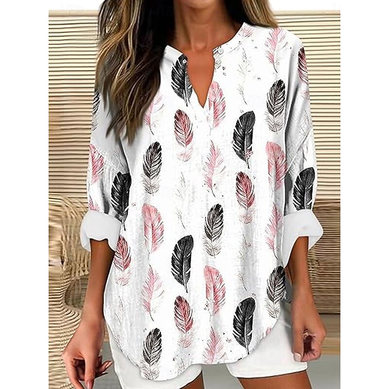 Women's Blouse Tunic V Neck Long Sleeve Boho Casual Tops 3D Print Floral Graphic Vintage Tropical Regular Tops Daily Wear Print White Yellow Pink Blue Khaki 9