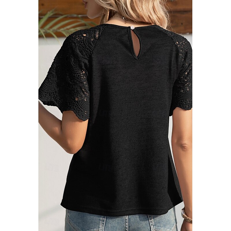 More information about Women's Blouse Lace Tops Plain Casual Short Sleeve Crew Neck Regular Tops Daily Holiday Going out Lace Black White Purple Summer