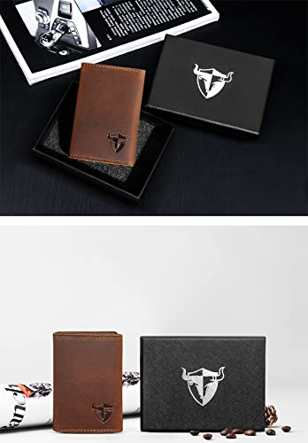 HOT ! Natural Crazy Horse Leather Travel Gift Front Pocket With Airtag Card Case Snap Organizer Rfid Wallet For Men Male 1691 (Brown)