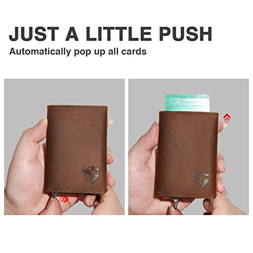Natural Crazy Horse Leather Travel Gift Front Pocket With Airtag Card Case Snap Organizer Rfid Wallet For Men Male 1691 (Brown) 6
