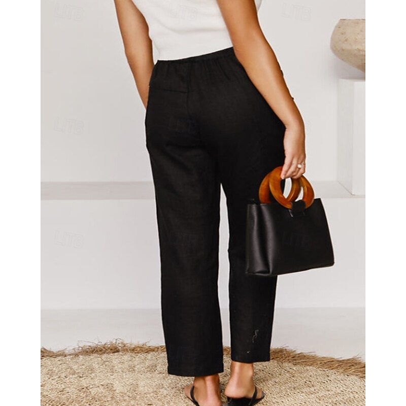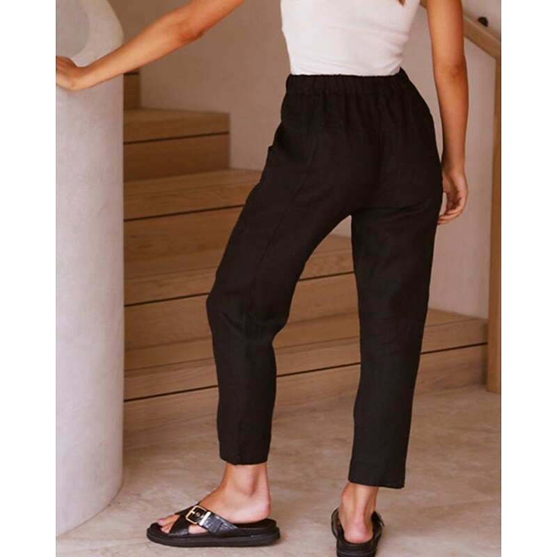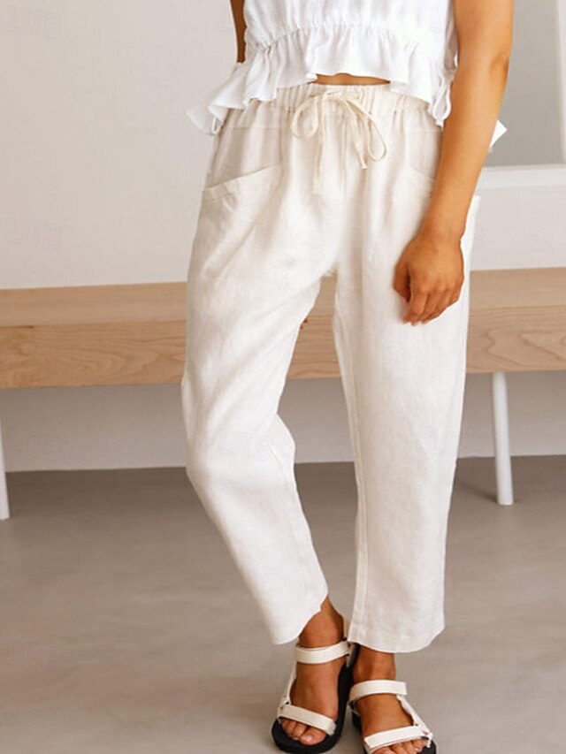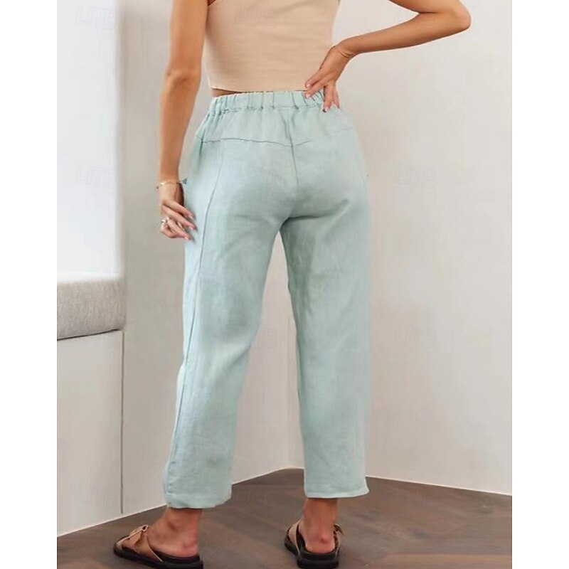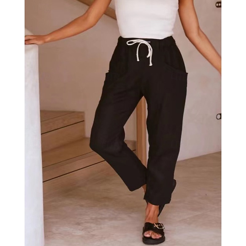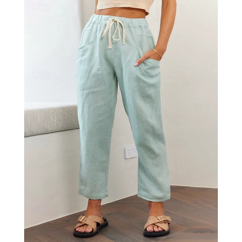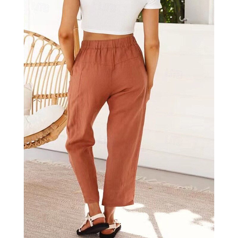 More information about Women's Cotton Linen Pants Slacks Fashion Streetwear Full Length Natural Plain Pocket Elastic Drawstring Design Outdoor pleasant Vacation Going out Rust Light Sky Blue Grey Black Summer Regular Fit