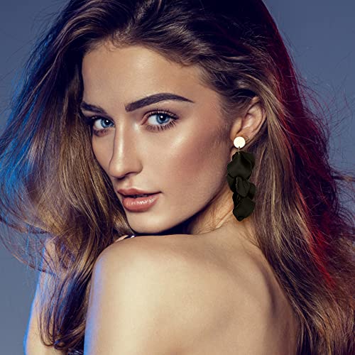 More information about THUNARAZ Acrylic Clip on Earrings for Women Long Rose Petal Earrings Dangle Exaggerated Flower Earrings Drop Statement Floral Tassel Earring