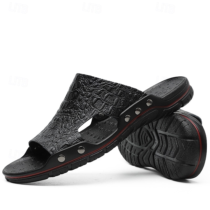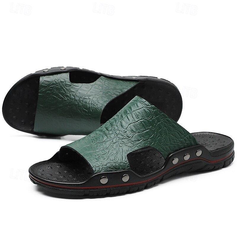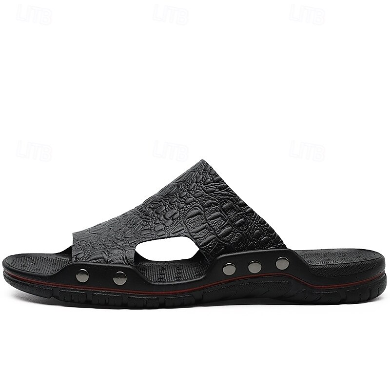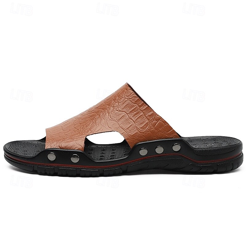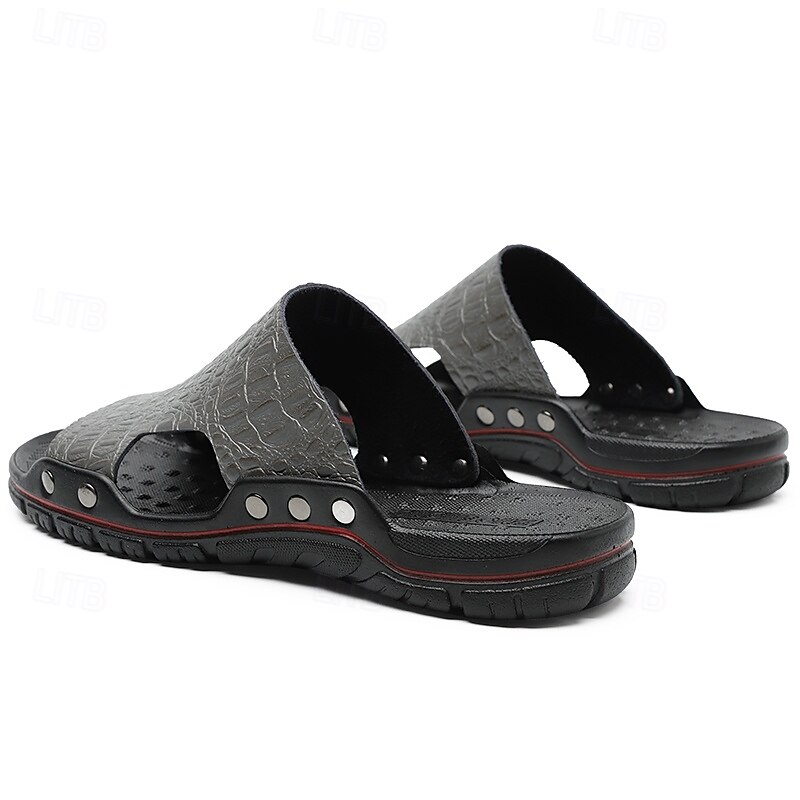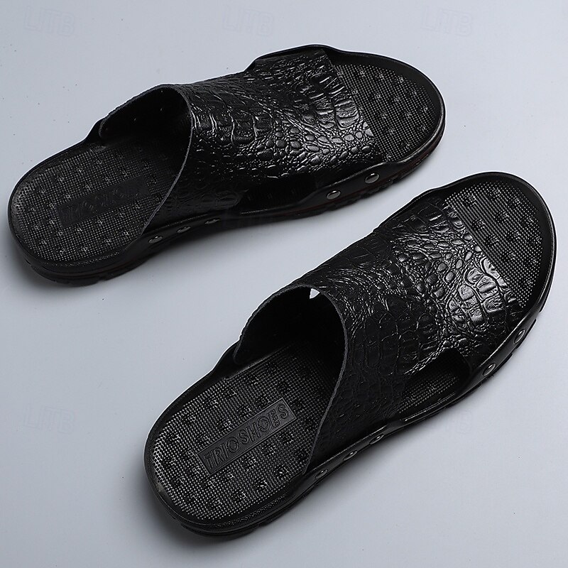 Men's Casual Brown Slide Sandals with Crocodile Pattern and Durable Rubber Sole – Comfortable Outdoor Footwear for Summer, Beach and Daily Wear 31