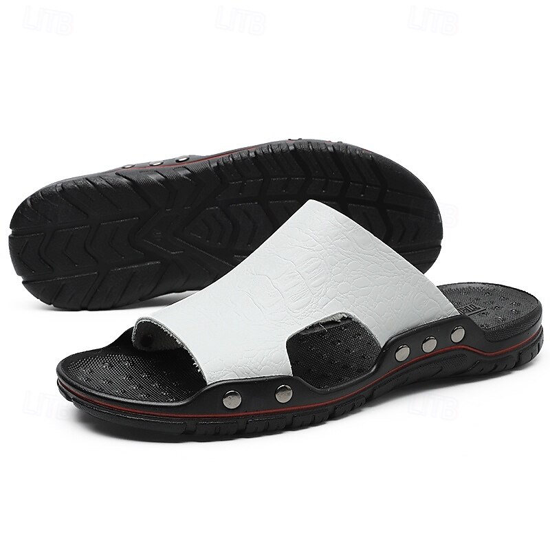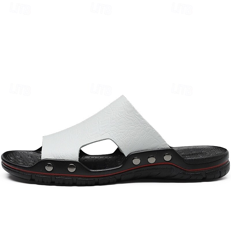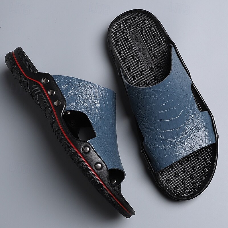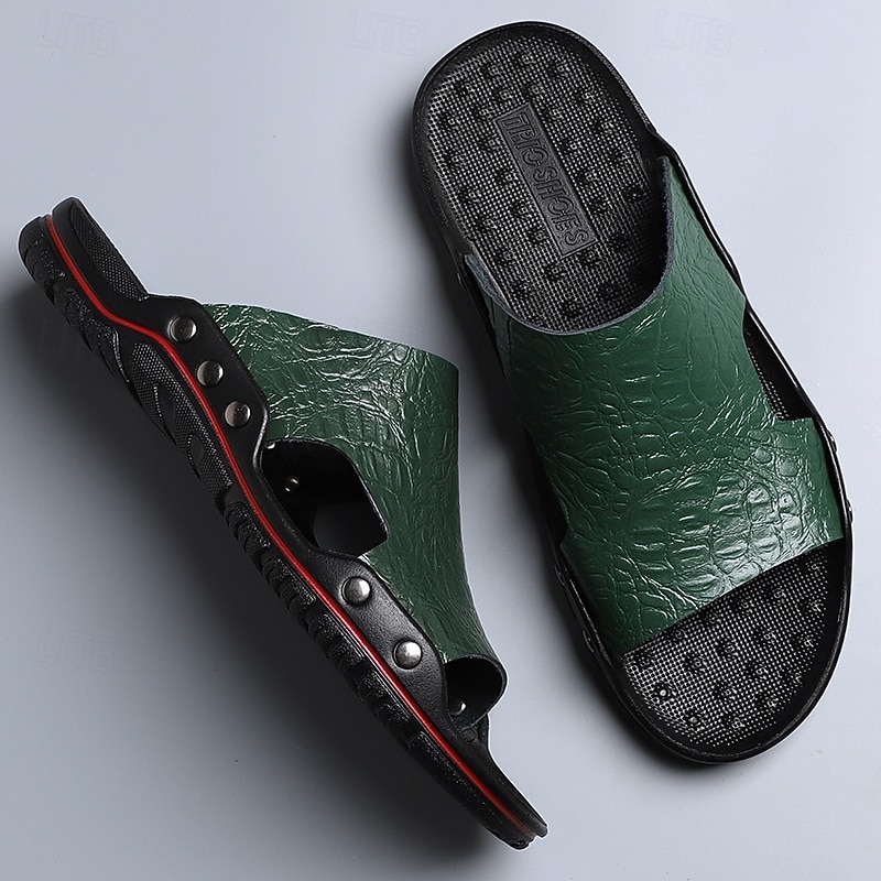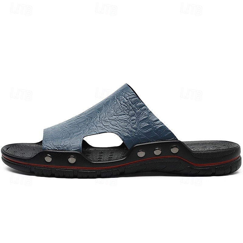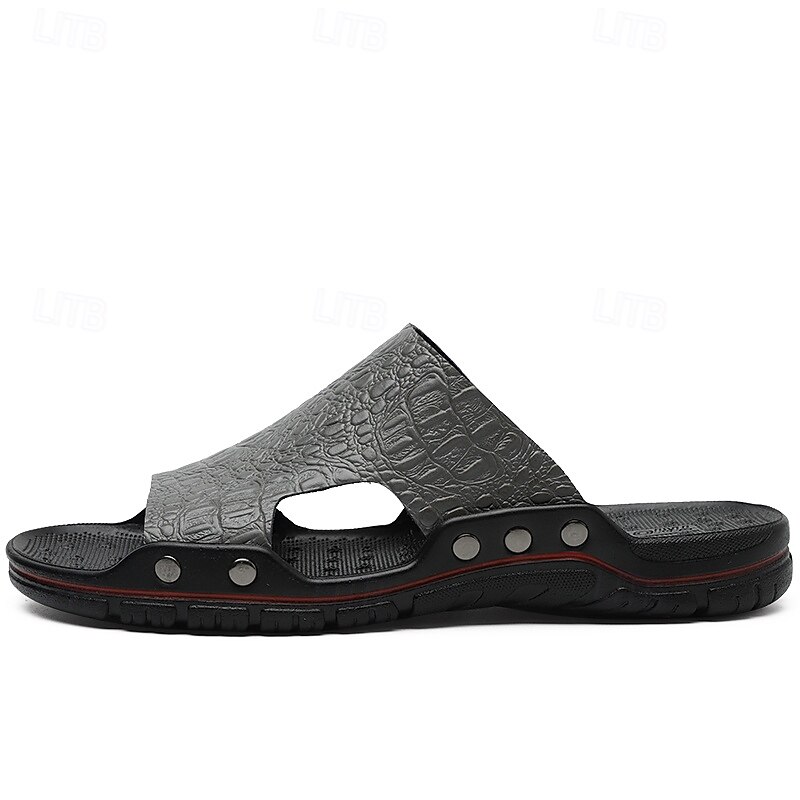 Men's Casual Brown Slide Sandals with Crocodile Pattern and Durable Rubber Sole – Comfortable Outdoor Footwear for Summer, Beach and Daily Wear 31