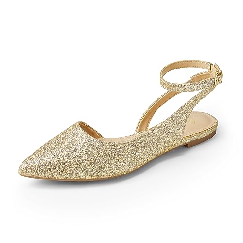 HOT ! Arromic Women's Slingback Flats Shoes Pointed Toe Two-Way Wear Adjustable Ankle Strap Slip on Flat Shoes for Women Dressy Gold/Glitter