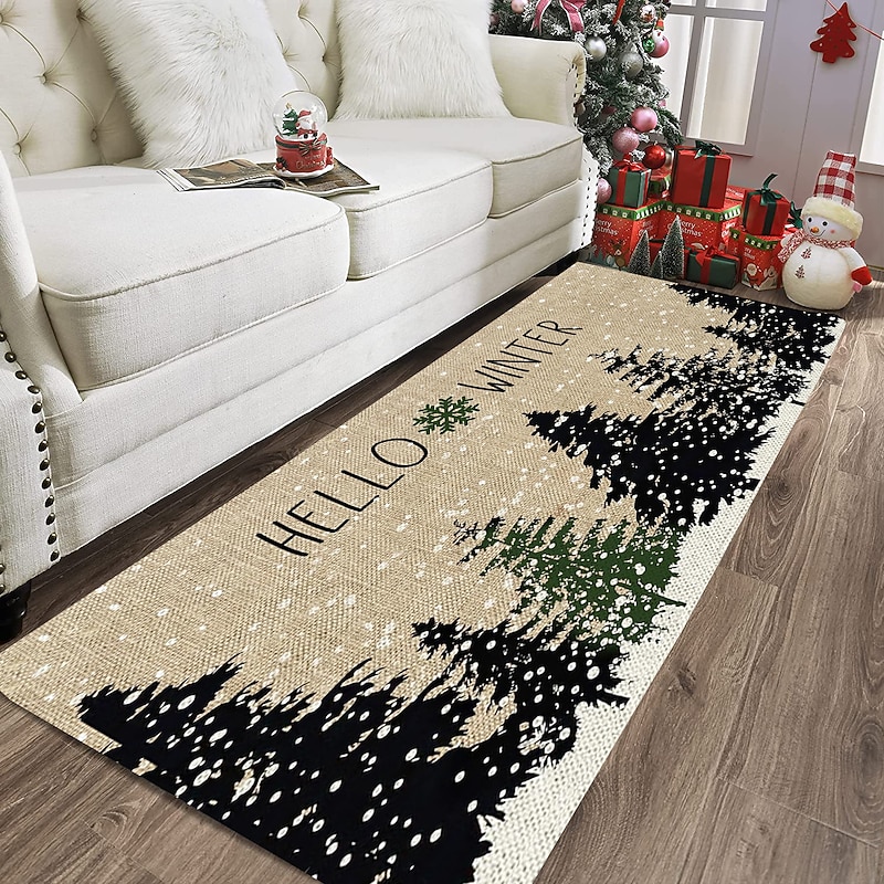 Christmas Decorations Tree Area Rug Non Slip Xmas Floor Mat Bedside Livingroom Bedroom Indoor Outdoor 11
