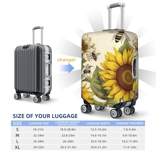 HOT ! Travel Luggage Cover Anti-Scratch Suitcase Cover Protector Elastic Thicken Luggage Protector Washable Baggage Covers Bees Sunflowers Daisy Rose Flowers Suitcase Sleeve Fit 18-32 Inch Luggage Medium