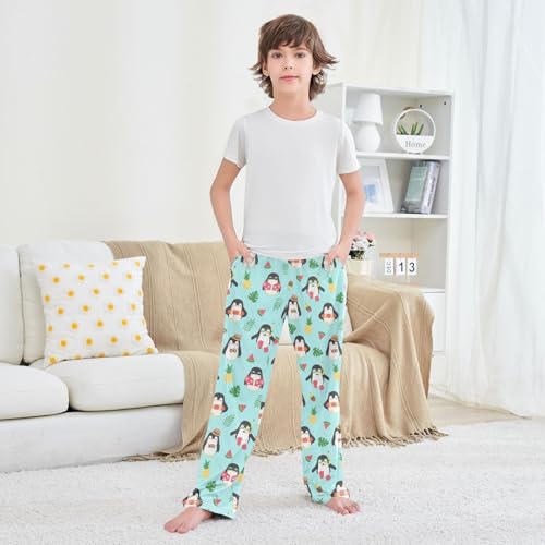 Aloha Penguin Boys Long Pants smooth Trousers Elastic Waist Kids Lounge Bottoms with Pockets S-XL