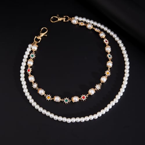 Wallet Chain Layered Pants Chains for Men Women, Punk Jeans Key Chain Accessories Exquisite Rhinestone Flower Pearl 2