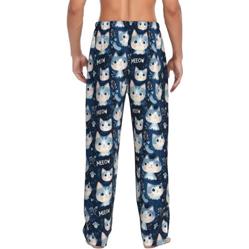 HOT ! Mens Pajama Pants - Cute Blue Cat Print Soft Sleep Lounge Pants For Men, Casual Pj Bottoms With Pockets