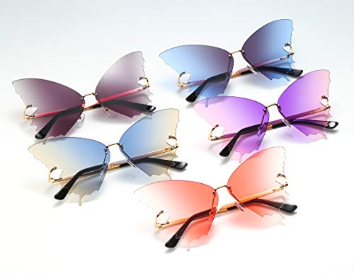 • ❤FASHION AND UNIQUE DESIGN: Unique butterfly shape and rimless design increase the fashion sense of glasses, which will become the trend in this year. Candy colored gradient lens are more eye-catching in the crowd, and are very suitable for matching different styles of clothing and shapes.
