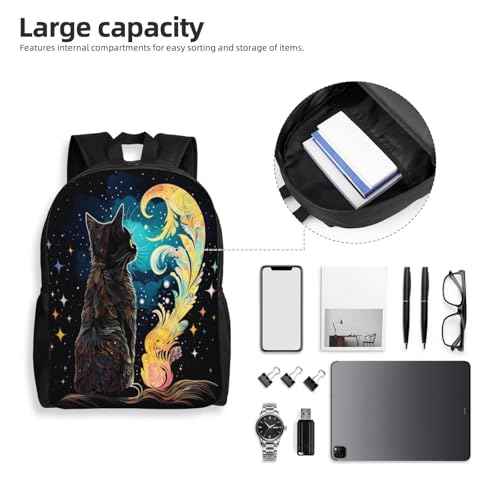 Comfort Fit Unisex Cat Stars Night Sky Backpack Durable for Daily Commute & Travel Adventures 16 Inch 6