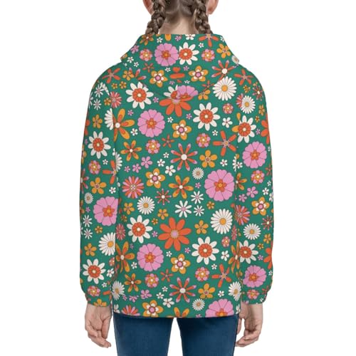 Retro Flower Kids Pullover Hoodies Boys Zip Up Sweatshirts Girls Athletic Clothes with Pocket 5