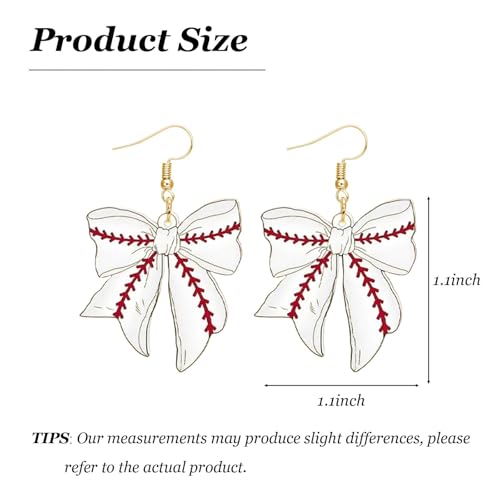 HOT ! Baseball Softball Bow Earrings for Women Bow Dangle Earring Fan Jewelry with Sporty Game Day Earrings Baseball Softball Party Favors Player Jewelry Gifts