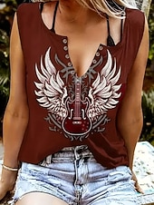 More information about Music Festival Women's Camisole Tank Top Bohemia Vintage Metallic Sleeveless V Neck Regular Tops Daily Black White Red Summer Spring