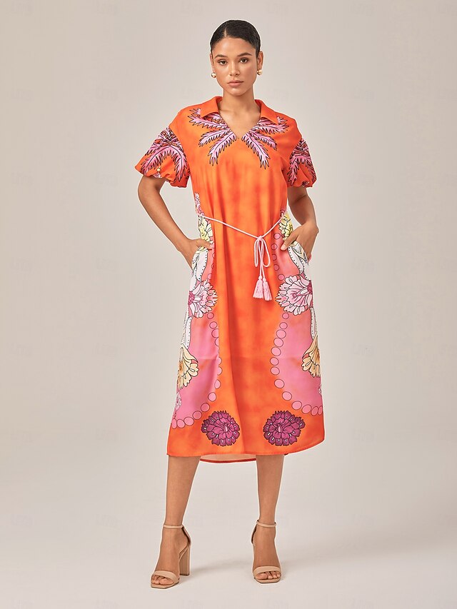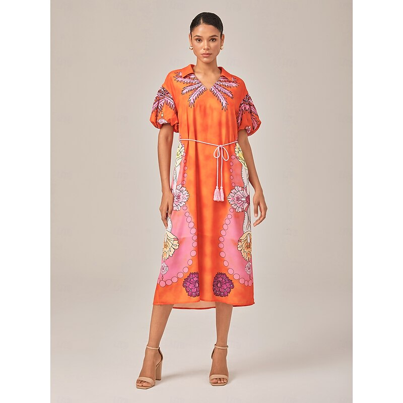 More information about Vacation Style Orange Placement Floral Maxi Dress