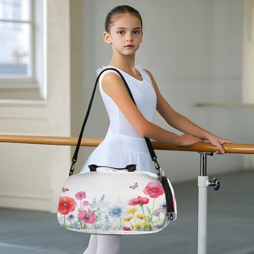 YETTASBIN Sport Travel Duffel Bag for Girls Boys, Herbal Wildflowers Large Waterproof Weekender Overnight Bag, Detachable Shoulder Strap Gym Bag with Shoe Compartment & Wet Pocket 4