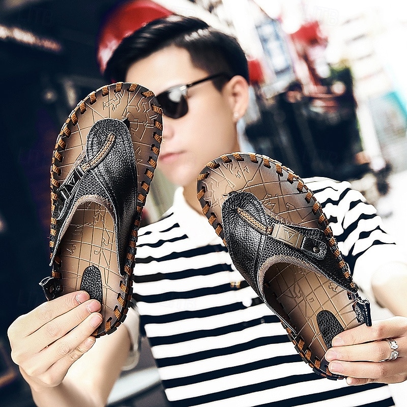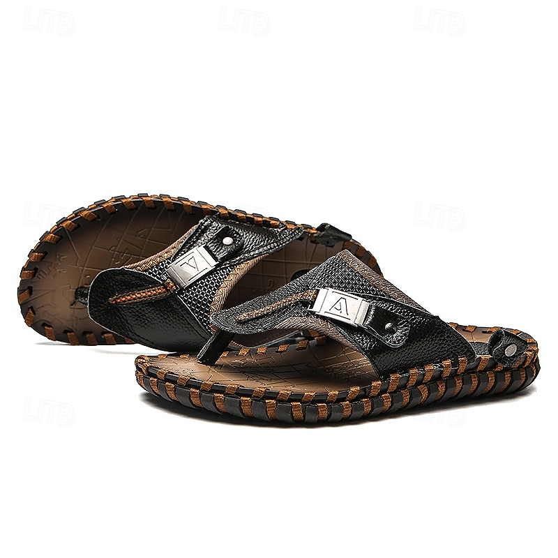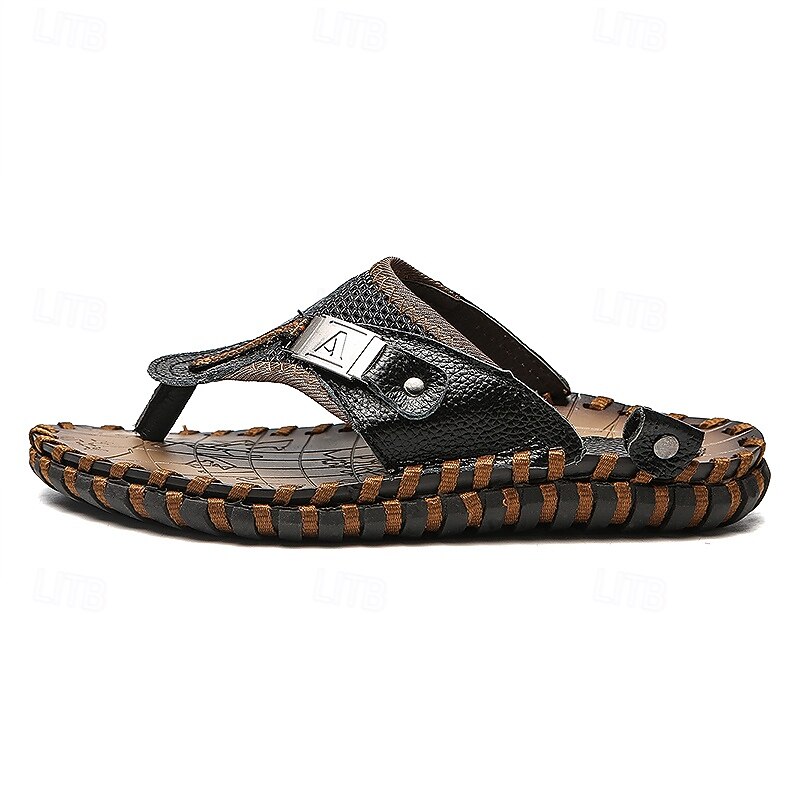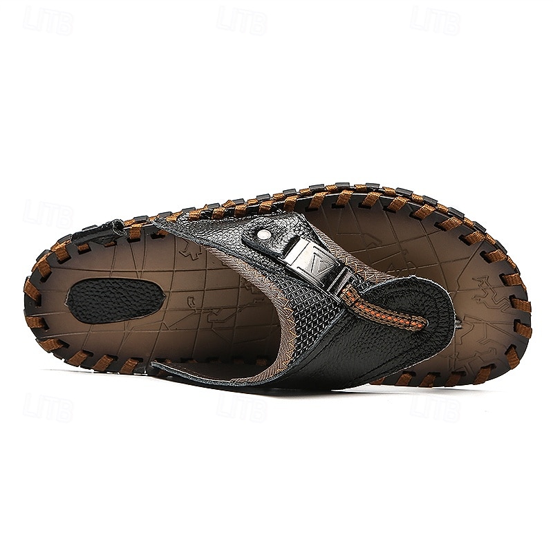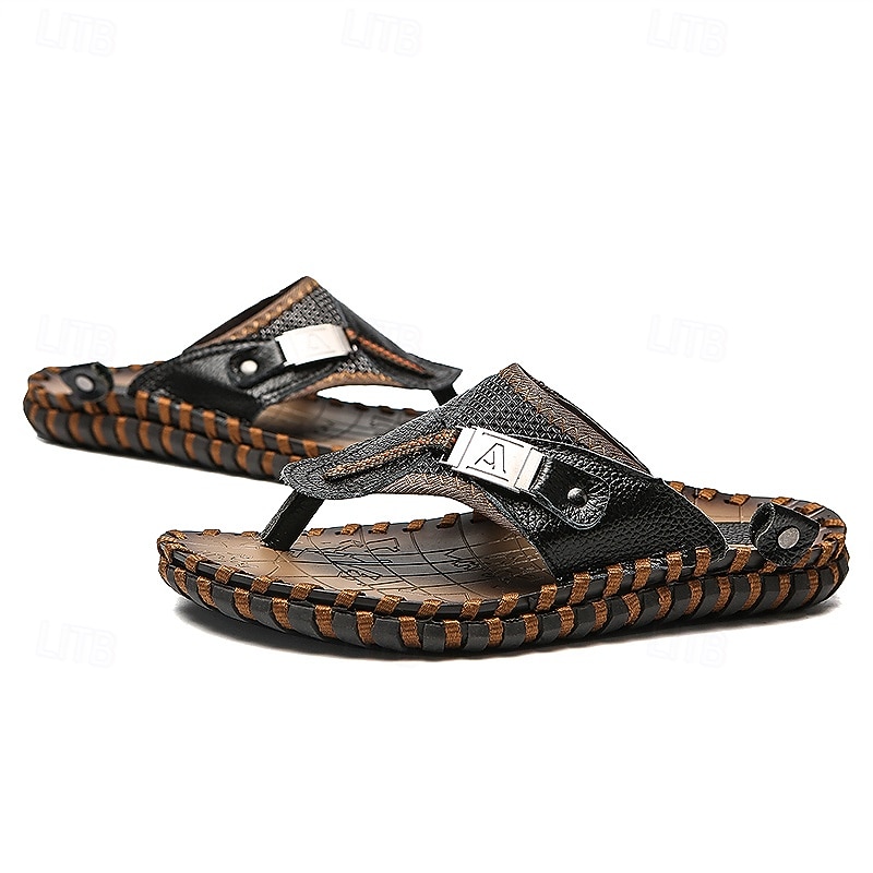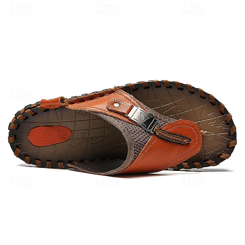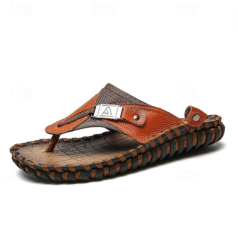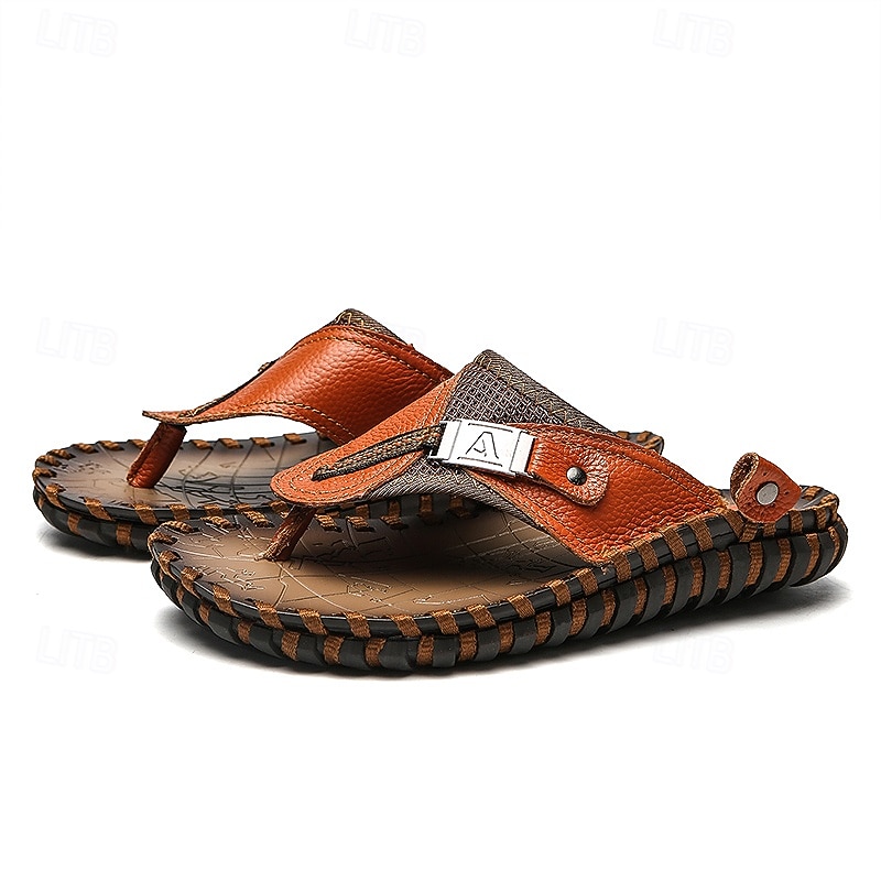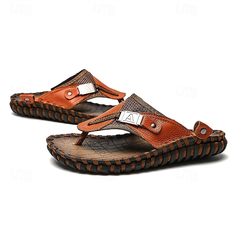 Men's Vintage Brown Faux Leather Flip Flops with Rugged Anti-Slip Sole – Outdoor Thong Sandals for Summer Hiking, Beach Adventures and Daily Casual Use