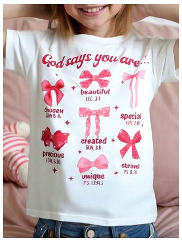 Girl's Bow Shirt Cute Graphic Tees Letter Print Short Sleeve Crew Neck Summer T Shirt 5