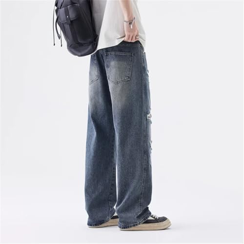 Men's Retro Ripped Slim Jeans High Street Loose Straight Wide Leg Pants 4