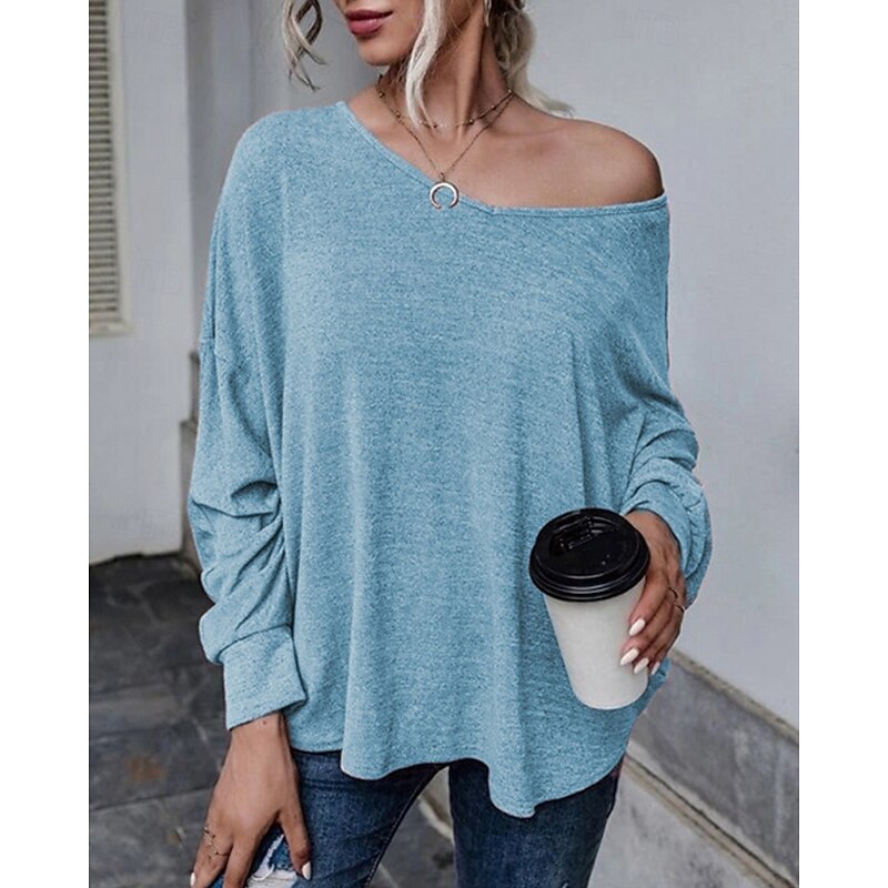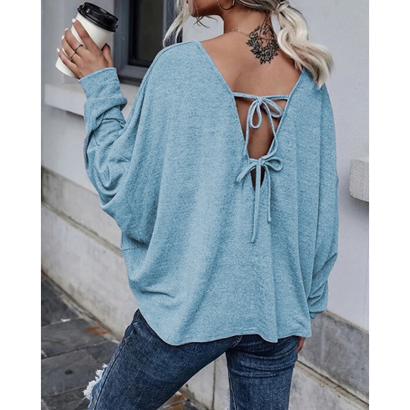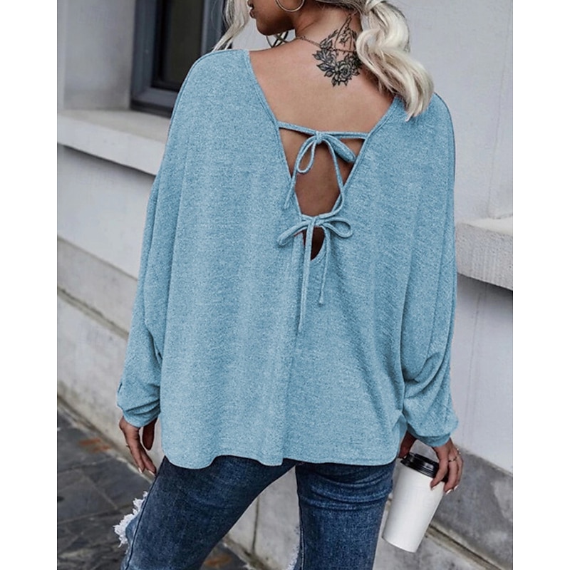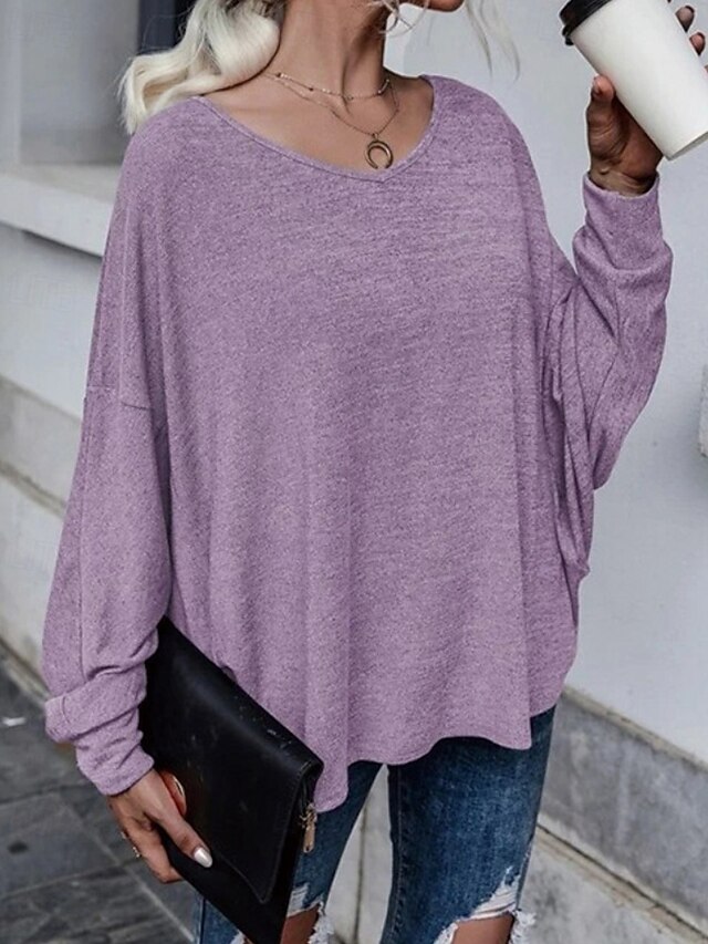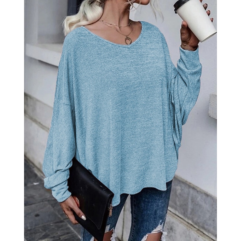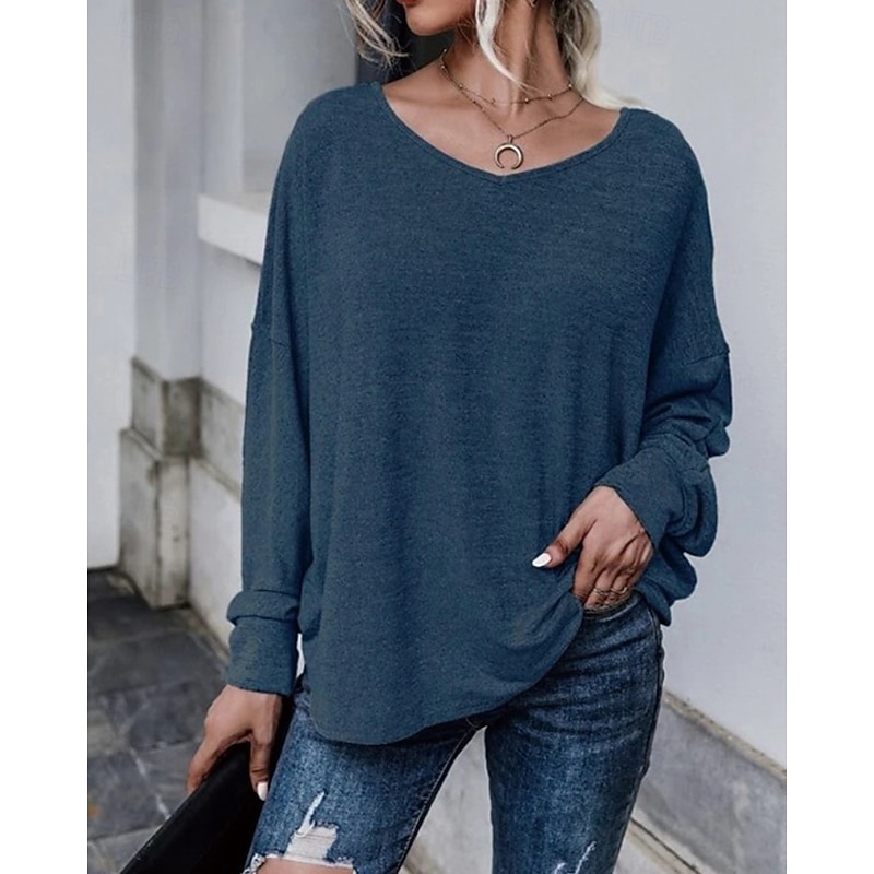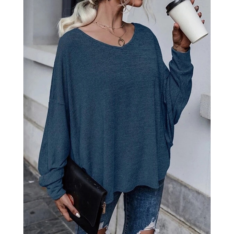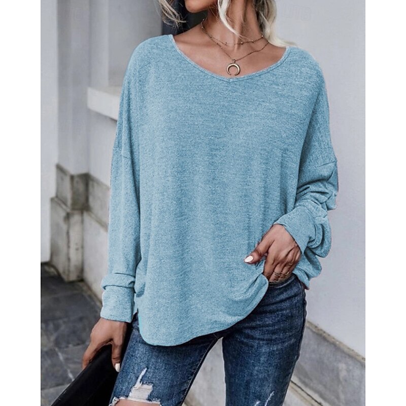 More information about Women's Blouse Plain Casual Long Sleeve V Neck Regular Tops Daily Holiday Going out Asymmetric Hem Dusty Blue Purple Light Blue Summer