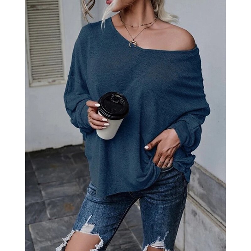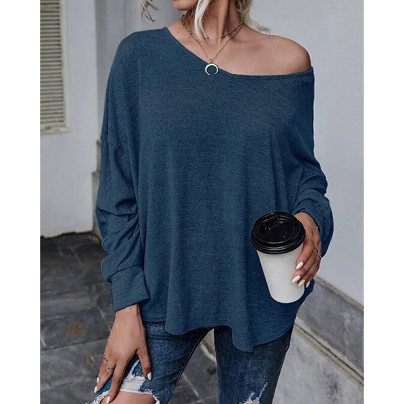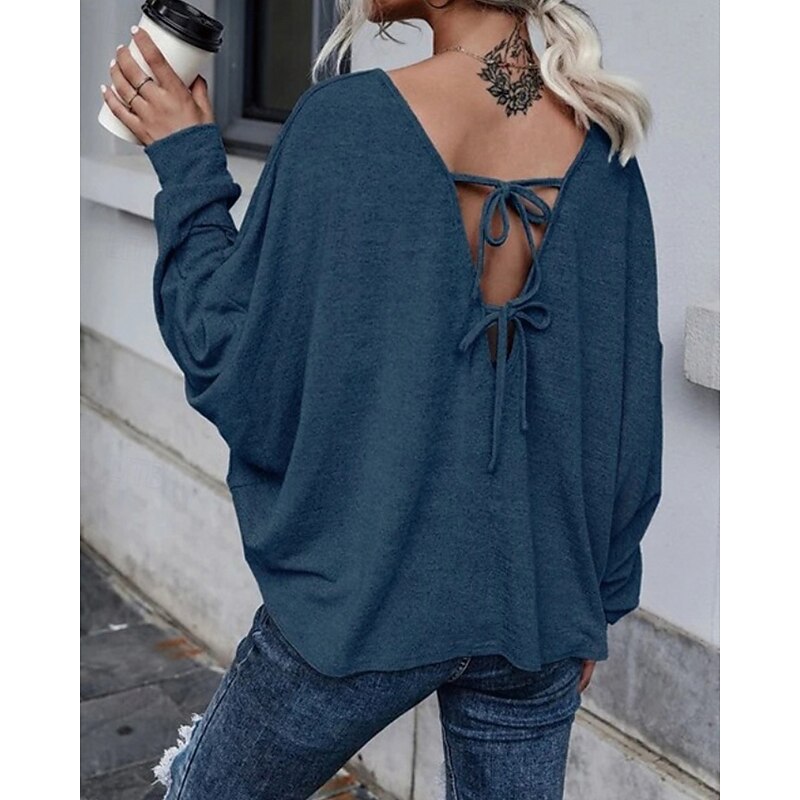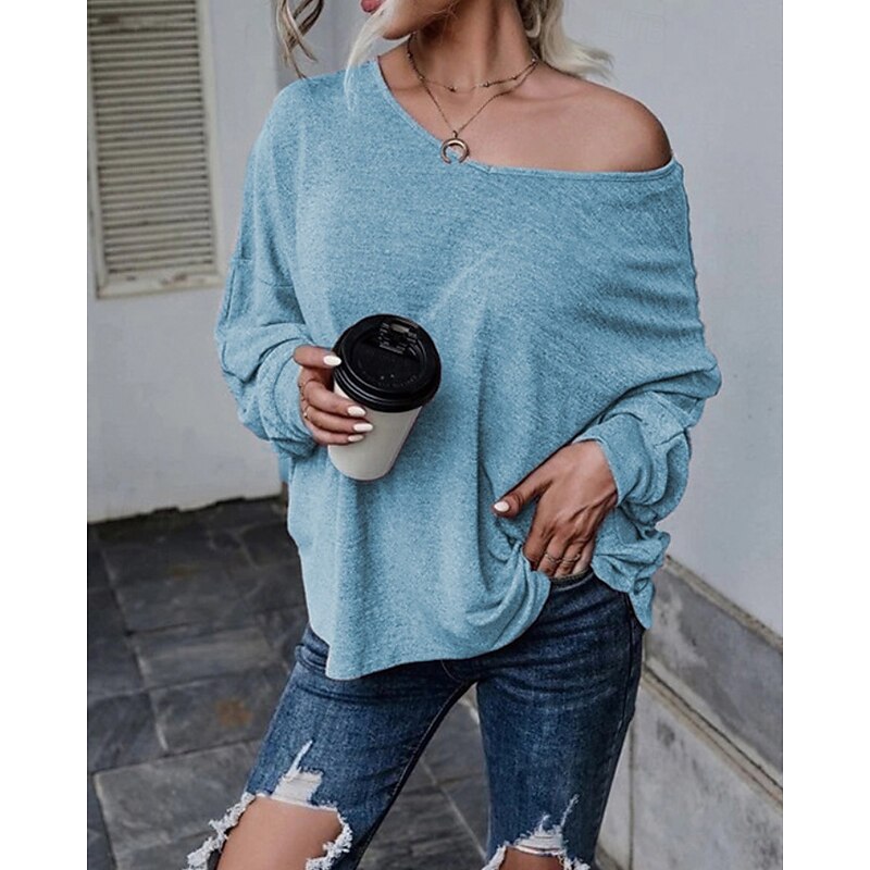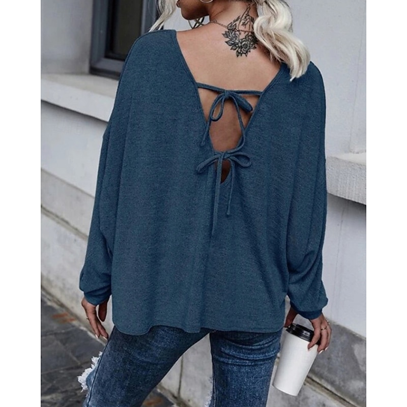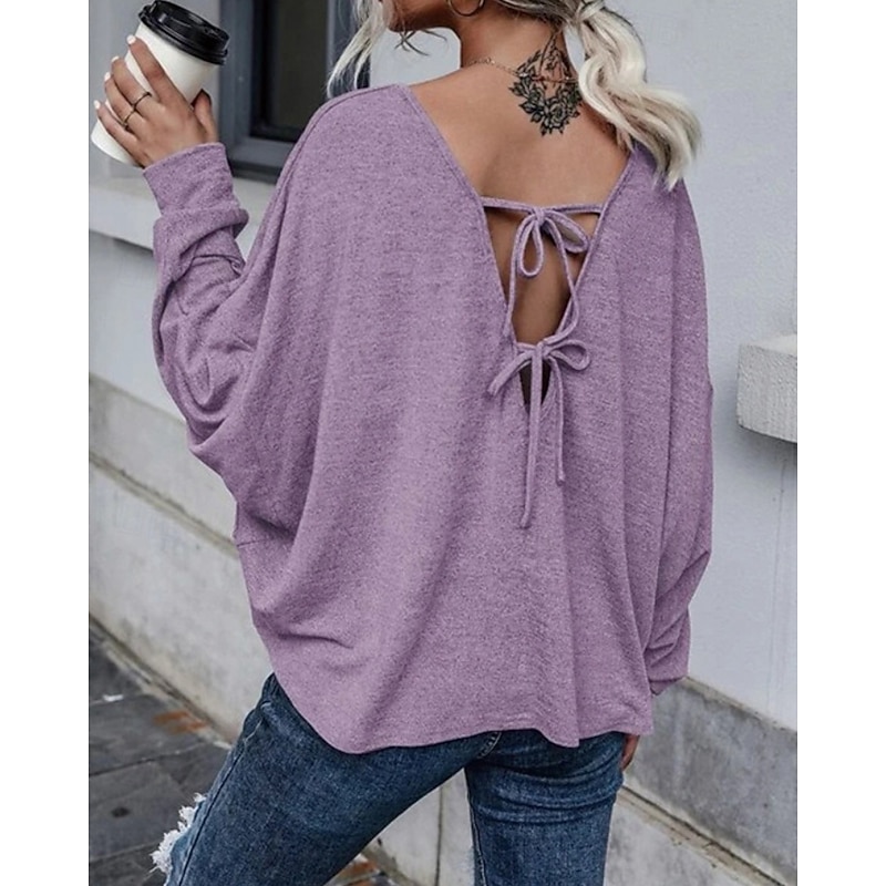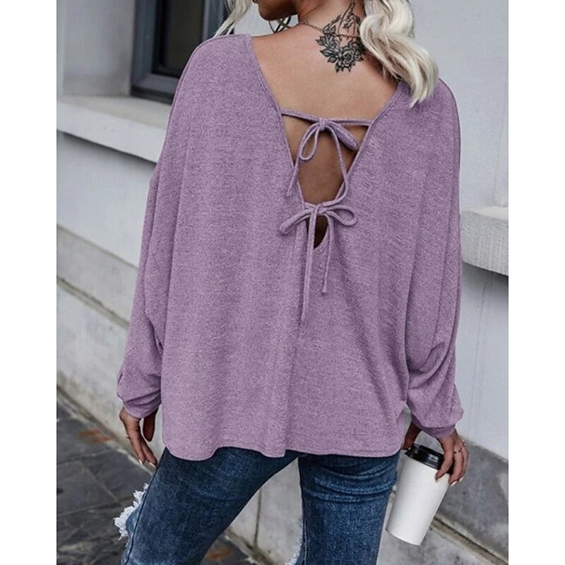 More information about Women's Blouse Plain Casual Long Sleeve V Neck Regular Tops Daily Holiday Going out Asymmetric Hem Dusty Blue Purple Light Blue Summer