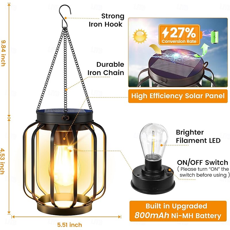 Solar Lanterns Metal Solar Lights Outdoor Waterproof Hanging Outdoor Lanterns Decorative Outdoor Lighting for Outside Patio Garden Yard Pathway Porch 14