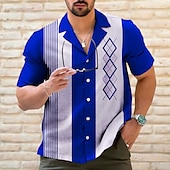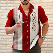 More information about Men's Striped Geometric Pattern Geometry Shirt Bowling Shirt Button Up Shirt Short Sleeve Sports Fashion Streetwear Outdoor Casual Holiday Summer Spring Cuban Collar Print Black Light Green Wine Blue