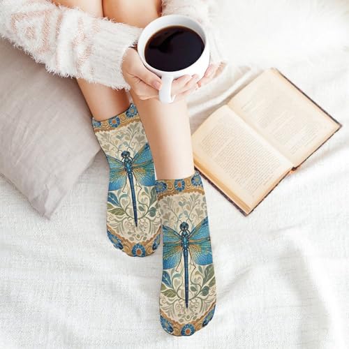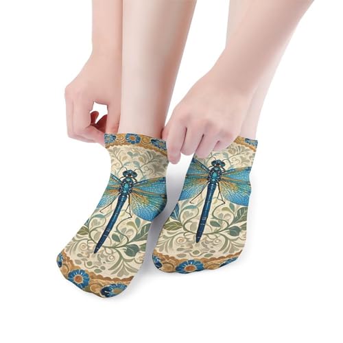 HOT ! Hand Painted Blue Dragonfly Ankle Socks 5 Pairs Low Cut Non Slip No Show Socks Comfortable Athletic Socks for Women Men