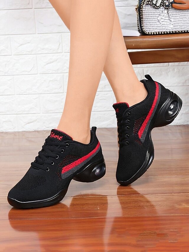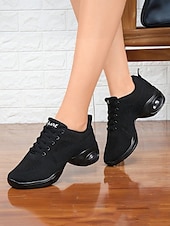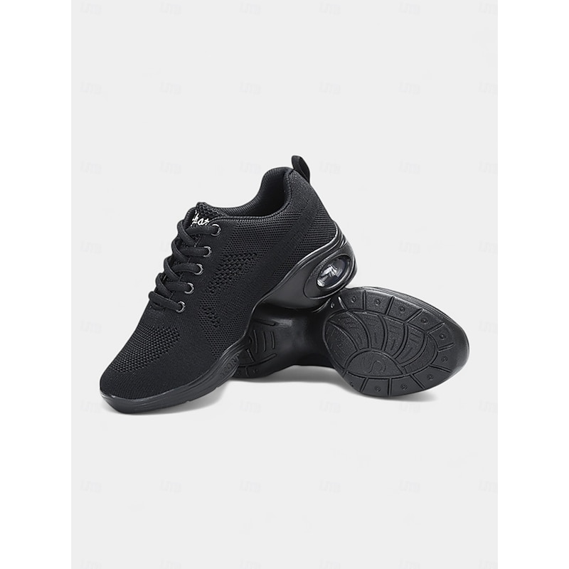Women's Black Mesh Lace-Up Dance Sneakers - Breathable Lightweight Jazz Shoes with Air Cushion Sole for Professional Practice and Performance 1