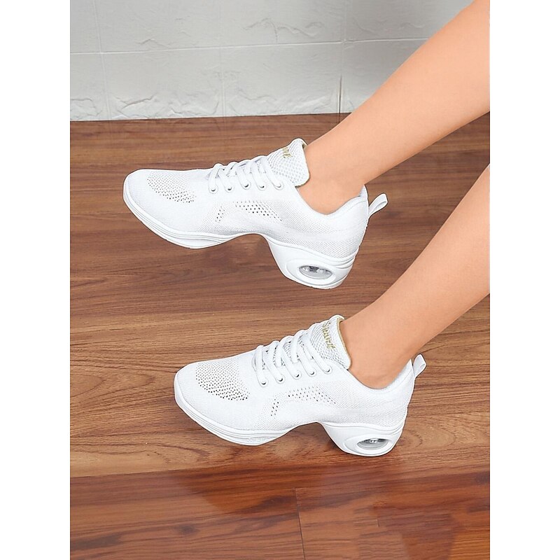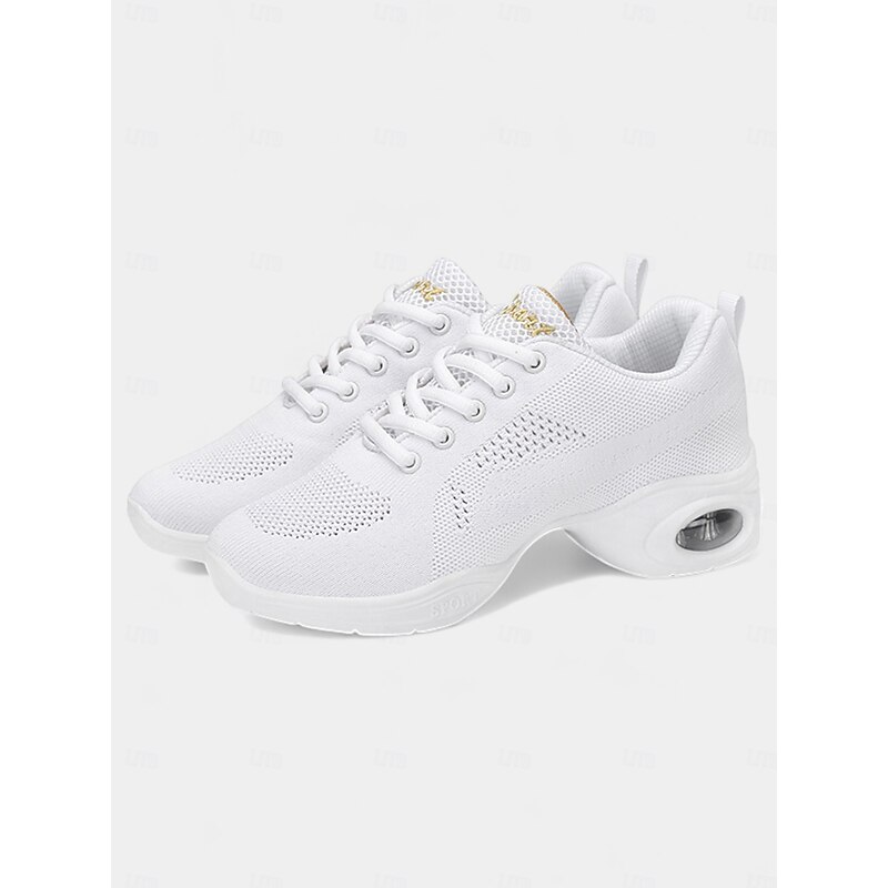 HOT ! Women's Black Mesh Lace-Up Dance Sneakers - Breathable Lightweight Jazz Shoes with Air Cushion Sole for Professional Practice and Performance