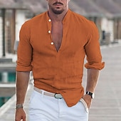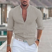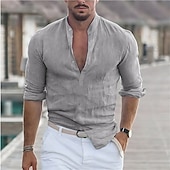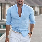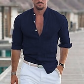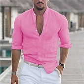 More information about Men's Linen Shirt Popover Shirt Casual Shirt Band Collar Shirt Plain Vacation Curise Black White Pink Navy Blue Long Sleeve Collar Spring & Summer Clothing Apparel